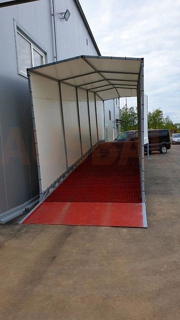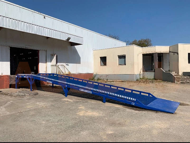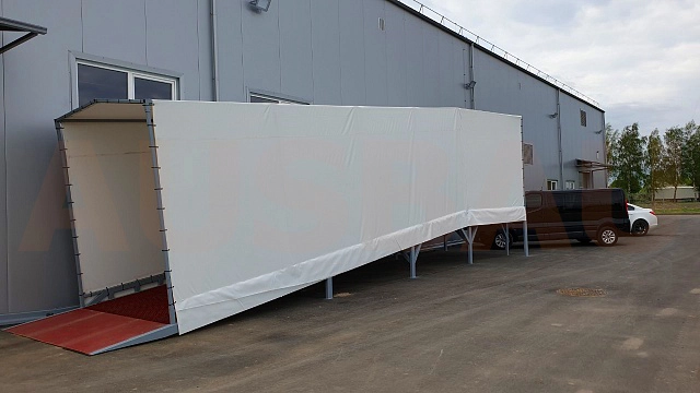 Стационарные рампы AUSBAU-STB с горизонтальной площадкой устанавливаются перед доковыми воротами или на открытой ровной площадке, обеспечивая безостановочный и беспрепятственный путь между уровнем земли и уровнем склада или грузовика. Благодаря наличию горизонтальной площадки на рампах AUSBAU-STB водитель погрузчика может выровнять его положение перед заездом или выездом с/на склад или грузовик,. Таким образом, вилы будут идти параллельно земле и у водителя погрузчика будет полный обзор. Рампы AUSBAU-STB фиксируются с помощью болтов (к складу) или цепей (к складу или грузовику). Соединительный мостик выполнен из 16 мм стали с чечевичным покрытием поверхности, действуя как согласующее звено между рампой и объектом (склад или кузов грузовика).